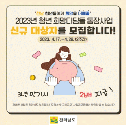 ¡®Ã»³â Èñ¸Áµðµõµ¹ ÅëÀ塯 »ç¾÷Àº û³âÀÌ Áö¿ª¿¡¼ ¾ÈÁ¤ÀûÀ¸·Î ¹Ì·¡¸¦ ÁغñÇÒ ¼ö ÀÖµµ·Ï Àü³²µµ¿Í û³âÀÌ °øµ¿ Àû¸³ ÅëÀåÀ» °³¼³ÇØ Ã»³âÀÇ ÀÚ»êÇü¼ºÀ» µ½´Â °ÍÀ¸·Î û³âµé¿¡°Ô´Â Èñ¸ÁÀÇ ¸¶Áß¹°ÀÌ µÇ´Â »ç¾÷ÀÌ´Ù. 2017³â û³â Çູ½ÃÃ¥À¸·Î ½ÃÀÛÇØ ¿ÃÇØ 4¿ù±îÁö 5õ254¸íÀ» ¼±Á¤ÇØ Áö¿øÇß´Ù. ÀÌ Áß 2õ185¸íÀÌ ¸¸±â Àû¸³±Ý 156¾ï¿© ¿øÀÇ ÇýÅÃÀ» ¹Þ¾Ò´Ù. Àû¸³±ÝÀº ±¸Á÷¡¤Ã¢¾÷ÀÚ±Ý, °áÈ¥ÀÚ±Ý, ÇÐÀÚ±Ý ´ëÃâ »óȯ µî¿¡ À¯¿ëÇÏ°Ô »ç¿ëµÈ °ÍÀ¸·Î Á¶»çµÆ´Ù.