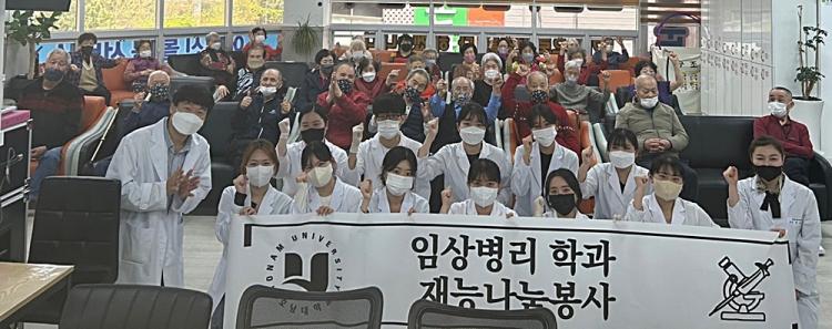 ÀÓ»óº´¸®Çаú´Â 4¿ù 7ÀÏ 7È£°ü ÁÖº¯¿¡¼ ÀüÇгâ»ýÀÌ Âü¿©ÇÑ °¡¿îµ¥ ¾²·¹±â¸¦ ÁÝ´Â µî ±³³» Á¤ÈȰµ¿À» Àü°³ÇÏ´Â ÇÑÆí, ÀçÇлý 12¸í°ú ±³¼ö 2¸íÀº ¼±¿î³ëÀÎÁÖ°£º¸È£¼¾Å͸¦ ¹æ¹®ÇÏ¿© °Åµ¿ÀÌ ºÒÆíÇϰųª ºÎÁ¤±âÀûÀ¸·Î º´¿ø µîÀ» ¿À°¡´Â ¾î¸£½ÅµéÀ» ´ë»óÀ¸·Î ¡®Ã£¾Æ°¡´Â ¸ÂÃãÇü °Ç°°ËÁø¡¯ºÀ»çȰµ¿À» ¹ú¿´´Ù.