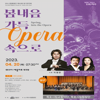 À̹ø ¿¬ÁÖȸ´Â ¡®º½³»À½ °¡µæ Opera ¼ÓÀ¸·Î¡¯¶ó´Â ÁÖÁ¦·Î ¿©¼ö½Ã¸³ÇÕâ´Ü ´Ü¿ø°ú ¸ñÆ÷½Ã¸³°üÇö¾Ç´Ü, ¸ñÆ÷½Ã¸³ÇÕâ´Ü µî 100¿© ¸íÀÌ ³Ñ´Â ÀοøÀÌ Ã⿬ÇÑ´Ù.