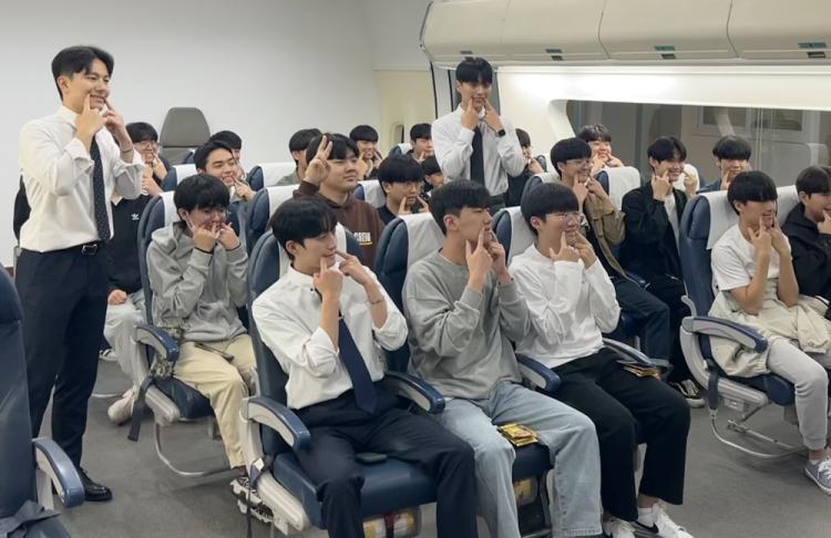 ±¤´ö°í 3Çгâ Çлý 21¸íÀÌ Âü¿©ÇÑ °¡¿îµ¥ ±¤ÁÖ´ë Àü»ê°ü 2Ãþ ºñÇà±â ±â³»(Mock up) ½Ç½À½Ç¿¡¼ ÁøÇàµÈ À̳¯ Àü°ø Áø·ÎüÇè¿¡¼´Â Ç×°ø ±â³»¹æ¼Û ¼ö¾÷À» ÁøÇàÇÏ´ø Ç×°ø¼ºñ½ºÇаú ÇлýµéÀÌ ±³¼öÀÇ ½Â°´ ¾ÈÀü ºê¸®ÇÎ ±â³»¹æ¼Û¿¡ ¸ÂÃç ½Ã¿¬ÇÏ´Â ¸ð½ÀÀ» º¸¿©ÁÖ°í, ½ÄÀ½·á ¼ºñ½º ½Ç½Àµµ ÇÔ²² ½Ç½ÃÇß´Ù.