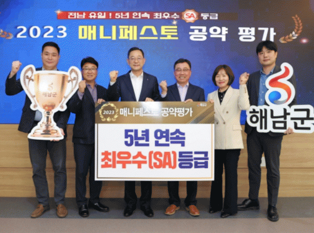 5³â ¿¬¼Ó ÃÖ¿ì¼ö(SA) µî±ÞÀº Àü³²µµ³» À¯ÀÏÇÑ °á°ú·Î, ÇØ³²±ºÀº ¹Î¼±7±â 4³â ¿¬¼Ó ÃÖ¿ì¼ö(SA)¿¡ ÀÌ¾î ¹Î¼±8±â µé¾î ù Æò°¡¿¡¼µµ ÃÖ¿ì¼ö¸¦ ȹµæÇÏ¸é¼ ÃÖ°íÀÇ ¼ºÀûÀ» À̾°í ÀÖ´Ù.
