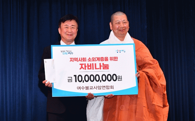 À̳¯ ¿©¼öºÒ±³»ç¾Ï¿¬ÇÕȸ´Â ȸÀå ÃëÀÓ¹ýȸ¸¦ ±â³äÇØ Áö¿ª»çȸ ¼Ò¿Ü°èÃþÀ» À§ÇÑ ÀÚºñ³ª´® 1000¸¸ ¿øÀ» ¿©¼ö½Ã¿¡ Àü´ÞÇß´Ù.