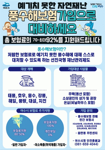 ¿©¼ö½Ã °ü°èÀÚ´Â ¡°ÃÖ±Ù ÀÌ»ó±âÈÄ·Î ÀÚ¿¬ÀçÇØ°¡ ºó¹øÈ÷ ¹ß»ýÇϰí ÀÖ´Ù¡±¸é¼ ¡°Àú·ÅÇÑ ºñ¿ëÀ¸·Î ÀÚ¿¬Àç³À¸·ÎºÎÅÍ ¼ÒÁßÇÑ Àç»êÀ» Áöų ¼ö ÀÖ´Â ¡®Ç³¼öÇØ º¸Ç衯¿¡ ¸¹Àº ½Ã¹ÎµéÀÇ °¡ÀÔÀ» ´çºÎµå¸°´Ù¡±°í ¸»Çß´Ù.