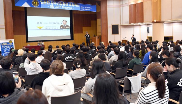 [ÅåÅå´º½º]È£³²´ëÇб³ °æÂûÇàÁ¤Çаú(ÇаúÀå ±èÁ¤±Ô)´Â 4¿ù 18ÀÏ ¿ÀÀü 11½Ã ±¹Á¦È¸Àǽǿ¡¼ ÀÓ¿ëȯ ±¤ÁÖ°æÂûûÀåÀ» ÃÊû, ¡®°æÂû ±×¸®°í Dreamers¡¯¶ó´Â ÁÖÁ¦·Î Ư°À» °¡Á³´Ù.