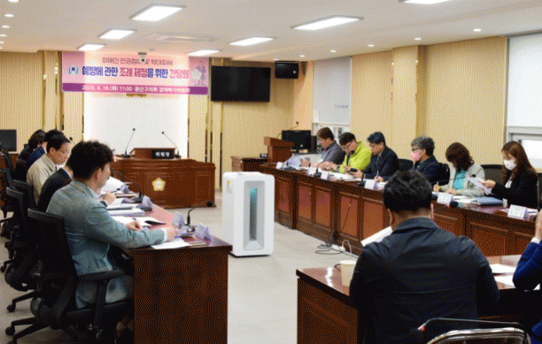 °£´ãȸ¸¦ ÁÖÀçÇÑ ±¹°Çö ÀÇ¿ø(Áøº¸´ç, ¼ÛÁ¤1¡¤2µ¿¡¤µµ»êµ¿¡¤¾î·æµ¿¡¤µ¿°îµ¿¡¤Æòµ¿¡¤»ïµµµ¿¡¤º»·®µ¿)Àº ¡°Àå¾ÖÀÎ ÀαÇÄ§ÇØ, ÇÐ´ë µîÀÇ ¹üÁ˰¡ Áö¼ÓÇØ¼ Áõ°¡ÇÏ´Â °¡¿îµ¥ ƯÈ÷ ´ëºÎºÐÀÌ °ÅÁÖÁö³ª °ü·Ã ½Ã¼³¿¡¼ ¹ß»ýÇϰí ÀÖ´Ù¡±¸ç ¡°Á¶·Ê¾ÈÀº ÀÌ °°Àº ¹üÁ˸¦ ¿¹¹æÇϰí ÇÇÇØ Àå¾ÖÀÎÀ» º¸È£¡¤Áö¿øÇÏ´Â Á¦µµÀû ÀåÄ¡¸¦ ¸¶·ÃÇÔÀ¸·Î½á Àå¾ÖÀÎ À뱂 º¸È£ ¹× ±ÇÀÍ ÁõÁø¿¡ À̹ÙÁöÇÏ´Â °ÍÀ» ¸ñÀûÀ¸·Î ÇÑ´Ù¡±°í ¼³¸íÇß´Ù.