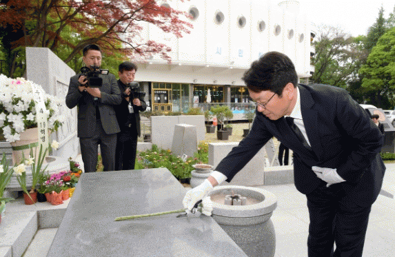 ° ½ÃÀåÀº ¡°¿ª»çÀÇ ÇöÀå¿¡¼ ±â³ä½ÄÀ» ÇÏÀÚ´Â Á¦¾ÈÀº ÀúÀÇ ¿À·¡µÈ »ý°¢À̾ú´Ù¡±¸ç ¡°¼±¹èµéÀÌ 4¡¤19Çõ¸íÀÇ ÁÖ¿ªÀ̾ú´Ù´Â »ç½ÇÀ» Áö±ÝÀÇ ÈĹèµéÀÌÀÚ ¹Ì·¡¼¼´ëÀÎ Çлýµé¿¡°Ô ÀüÇØ¾ß ÇÑ´Ù¡±°í ¹è°æ ¼³¸íÀ» Çß´Ù.