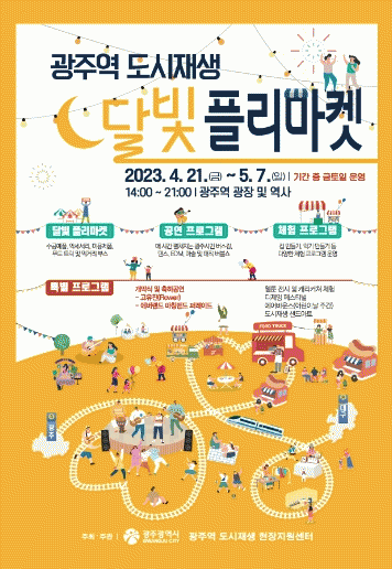 ±¤ÁÖ±¤¿ª½Ã´Â 4¿ù 21ÀϺÎÅÍ 5¿ù 7ÀϱîÁö ¸ÅÁÖ ±Ý¡¤Å䡤ÀÏ ¿ÀÈÄ 2~¹ã 9½Ã ±¤ÁÖ¿ª ±¤Àå¿¡¼ ¡®2023³â µµ½ÃÀç»ý ´Þºû¡¤Çø®¸¶ÄÏ¡¯À» °³ÃÖÇÑ´Ù.