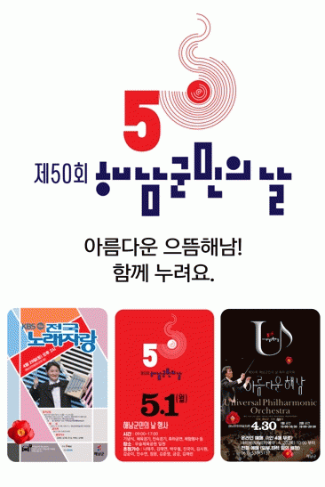 ƯÈ÷ ±º¹ÎÀÇ ³¯À» ±â³äÇØ 29ÀÏ¿¡´Â ÇØ³²±ºÃ» ±º¹Î±¤Àå¿¡¼ KBS Àü±¹³ë·¡ÀÚ¶û ³ìȰ¡ ÁøÇàµÇ¸ç, 30ÀÏ¿¡´Â ±¹³» ÃÖÁ¤»ó À¯´Ï¹ö¼³ ÇÊÇϸð´Ð ¿ÀÄɽºÆ®¶óÀÇ¡®¾Æ¸§´Ù¿î ÇØ³²¡¯ÃÊû°ø¿¬ÀÌ ÇØ³²¹®È¿¹¼úȸ°ü¿¡¼ ¿·Á »çÀü Çà»çµµ dz¼ºÇÏ°Ô ¸¶·ÃµÈ´Ù. ¿ÀÄɽºÆ®¶ó °ø¿¬¿¡´Â ÇØ³²±º¸³ÇÕâ´Ü°ú ¾î¸°ÀÌÇÕâ´ÜÀÇ Çù¿¬ÀÌ ÀÖÀ» ¿¹Á¤À¸·Î, ÃʵîÇлýµé·Î ±¸¼ºµÈ ¾î¸°ÀÌÇÕâ´ÜÀº µ¥ºß¹«´ë¸¦ ¼±º¸¿© ±º¹ÎÀÇ ³¯ ±â³äÀÇ Àǹ̸¦ ´õÇϰí ÀÖ´Ù.