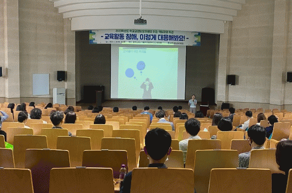 20ÀÏ ¼ºÎ±³À°Áö¿øÃ»¿¡ µû¸£¸é À̹ø Ư°Àº ±³»çÃâ½Å ±³±Çº¸È£Àü¹®°¡ ÀÓÀ̶û º¯È£»ç°¡ ¡®±³À°È°µ¿ Ä§ÇØ, ÀÌ·¸°Ô ´ëÀÀÇØ¡¯¶õ ÁÖÁ¦·Î ÁøÇàÇß´Ù. °ÀÇ´Â Çб³ ÇöÀå¿¡¼ ¸¹ÀÌ ¹ß»ýÇϰí ÀÖ´Â ±³±Ç Ä§ÇØ À¯Çüº° »ç·Ê¸¦ Áß½ÉÀ¸·Î ±¸¼ºµÆ´Ù. ¶Ç ´ëÀÀ ¹æ¾È, ¹ý·üÀû °ËÅä »çÇ×, »çÀü ¿¹¹æ ¹æ¾È µîÀ» ¾Ë±â ½±°Ô ¼³¸íÇß´Ù. À̸¦ ÅëÇØ À¯ÇüÀÌ ´Ù¾çÇØÁö°í °¥¼ö·Ï ´Ã¾î³ª´Â ±³À°È°µ¿ Ä§ÇØ »ç¾È¿¡ ´ëÇÑ ÇöÀå ±³¿øµéÀÇ ÀÌÇØµµ¿Í ´ëÀÀ ¿ª·®À» ³ôÀ̰íÀÚ ÇÑ´Ù.