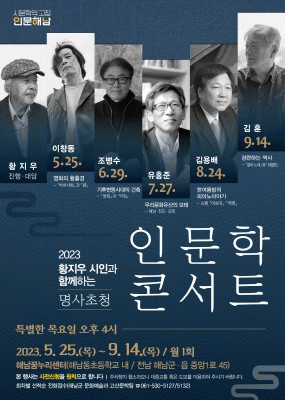 ÇØ³²±ºÀº 5¿ùºÎÅÍ 9¿ù±îÁö ¸Å¿ù ÇÑÂ÷·Ê, Çѱ¹ Àι®Çа踦 ´ëÇ¥ÇÏ´Â ¸í»ç¸¦ ÃÊûÇϴ¡®È²Áö¿ì ½ÃÀΰú ÇÔ²²ÇÏ´Â ¸í»çÃÊû Àι®ÇÐ ÄܼƮ¡¯¸¦ °³ÃÖÇÑ´Ù.