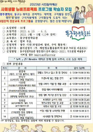 Âü¿©¸¦ Èñ¸ÁÇÏ´Â ±¤ÁֽùÎ(û³â¡¤ÀÏ¹Ý ±¸Á÷ÀÚ)Àº ¿À´Â 5¿ù 8ÀϱîÁö µ¿±¸Æò»ýÇнÀ°ü ¹æ¹® ¶Ç´Â µ¿±¸ µÎµå¸²À¸·Î Á¢¼öÇÏ¸é µÈ´Ù.