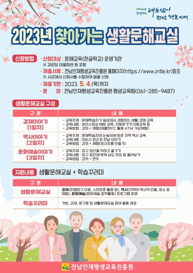 ¹®Çر³½ÇÀ» ¿î¿µÇÏ´Â µµ³» ½Ã¼³À̸é Âü¿©ÇÒ ¼ö ÀÖÀ¸¸ç ½Ã±º ´ã´çºÎ¼¿¡ ¿À´Â 5¿ù 4ÀϱîÁö Á¢¼öÇÏ¸é ½Ã±º¿¡¼ Àü³²ÀÎÀçÆò»ý±³À°ÁøÈï¿øÀ¸·Î Àϰý ½ÅûÇÑ´Ù.
