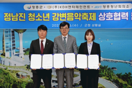À̳¯ Çù¾à½Ä¿¡¼ ±è¼º ÀåÈﱺ¼ö¿Í ±èµµÈñ KDH¿£ÅÍÅ×ÀÎ¸ÕÆ® ´ëÇ¥, ¼±Á¾Çö ÀåÈïû³âȸÀÇ¼Ò È¸ÀåÀº Çù¾à¼¿¡ °¢°¢ ¼¸íÇÏ°í »óÈ£Çù·ÂÇϱâ·Î Çß´Ù.