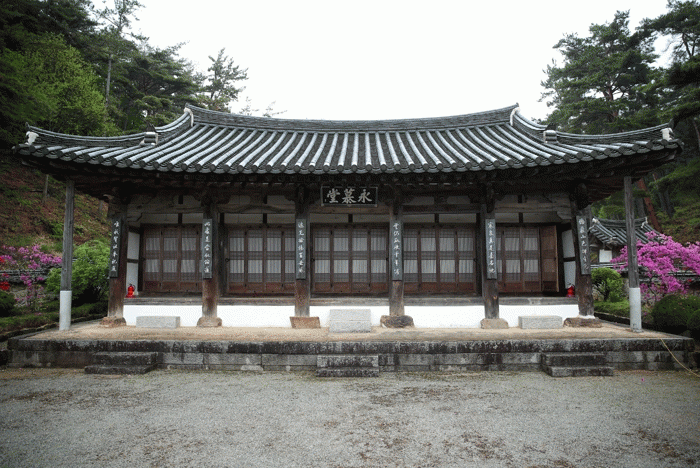 Ãß¿ø´ç ¿ª½Ã ÇØ³²À±¾¾ÀÇ Á¦°¢À¸·Î ´ç½Ã ÇØ³² °í»ê À±¼±µµ°¡ Áß½ÉÀÌ µÇ¾î, 1649³â °Ç¸³ÇÑ °ÍÀ¸·Î ¾Ë·ÁÁ³´Ù. ³»ºÎ¿¡ Á¦»ç¸¦ Áö³»±â À§ÇÑ ¸¶·ç°¡ ³Ð°Ô ²Ù¸çÁ® ÀÖÀ¸¸ç, °ÇÃà ±¸Á¶¿¡ »ç¿ëµÈ Ä¡¸ñ°ú ³ª¹«ÀÇ Â¥ÀÓ ¹æ½ÄÀº ¿õÀåÇÔ°ú µ¿½Ã¿¡ °£°áÇÑ ÀÚ¿¬¹Ì¸¦ °®Ãè´Ù. ¼÷Á¾ 28(1702)³â¿¡ »õ±ä Á·º¸ ¸ñÆÇ 93Á¡ÀÌ º¸°üµÇ¾î ÀÖ´Ù.