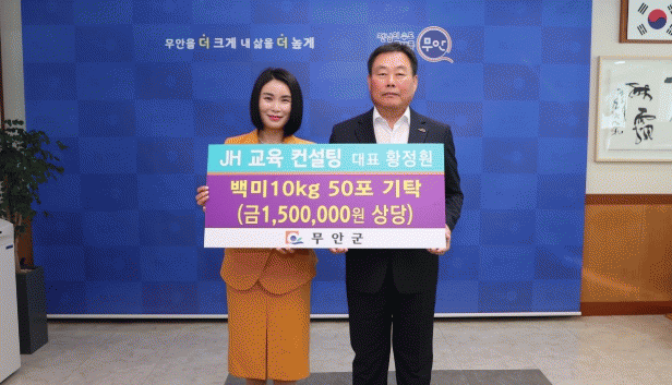 À̳¯ °³¼Ò½Ä¿¡¼ ¢ßJH±³À°ÄÁ¼³ÆÃÀº ³ó°¡ »ì¸®±â Ä·ÆäÀÎÀ¸·Î ²É Èȯ ´ë½Å ½Ò ÈȯÀ¸·Î ¹ÞÀº ¹é¹Ì 500kg(150¸¸ ¿ø »ó´ç)À» ¹«¾È±º¿¡ Àü´ÞÇÏ°Ô µÆ´Ù.