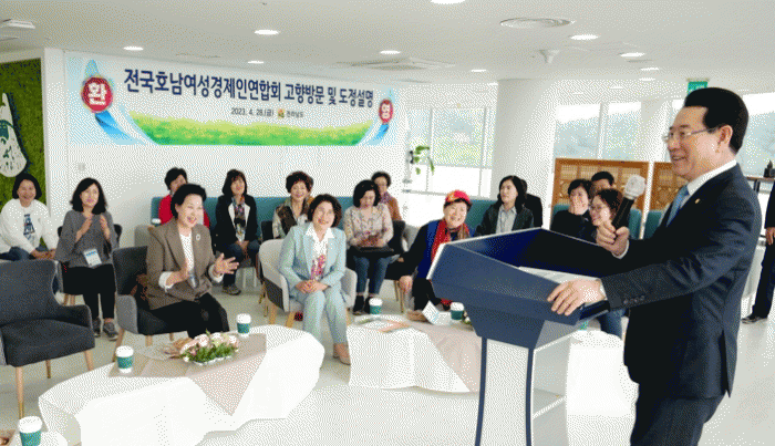¹ÚÈ¿°æ Àü±¹È£³²¿©¼º°æÁ¦Àο¬ÇÕȸÀåÀº ¡°Àü³²µµÃ»¿¡¼ °íÇ⠹湮 ¹× µµÁ¤ ¼³¸í Çà»ç¸¦ ÇØ ¸Å¿ì ¶æ±í°Ô »ý°¢Çϰí Å« ȯ¿µ¿¡ °¨»çµå¸°´Ù¡±¸ç ¡°Àü³²µµ¿¡¼ ¿ªÁ¡ ÃßÁø ÁßÀÎ ¡®Àü³² »ç¶û¾Ö(äñ) ¼Æ÷ÅÍÁ µî µµÁ¤¿¡ ´õ ¸¹Àº °ü½ÉÀ» ±â¿ïÀ̰í, ¹Ì·¡ Àü³² ¹ßÀüÀÇ Åä´ë¸¦ ¸¸µå´Âµ¥ Àû±Ø Çù·ÂÇϰڴ١±°í ¸»Çß´Ù.