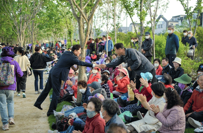 ÇÑÆí ³ë ½ÃÀåÀº À̳¯ Àú³á °³ÀÎ ÆäÀ̽ººÏÀ» ÅëÇØ Çà»ç ¼Òȸ¸¦ ¹àÈ÷¸ç ÀÌö¿ì °æºÏÁö»ç¸¦ ¾ð±ÞÇϱ⵵ Çß´Ù. ¡°ÀÌö¿ì °æºÏÁö»ç²²¼ ¼øÃµÀ» ¹æ¹®Çß´Ù. °Ý½Ä°ú ±ÇÀ§ÁÖÀǸ¦ ã¾Æº¸±â ¾î·Æ°í ¸» ¶ÇÇÑ ±º´õ´õ±â°¡ ¾ø¾ú´Ù. °³¸·½Ä¿¡¼µµ ¸¸Âù ÀÌÈÄ °ø½Ä °Ç¹èÁÖ ¸·°É¸®¸¦ È«º¸ÇØÁÖ°Ú´Ù¸ç µÎ ÀÜÀ» ¸¶½Ã°í °¡¼Ì´Ù.¡±¸é¼ Âü ¹è¿ï Á¡ÀÌ ¸¹Àº ºÐÀ̶ó°í ÀÌ Áö»ç¸¦ °ÝÂùÇß´Ù.