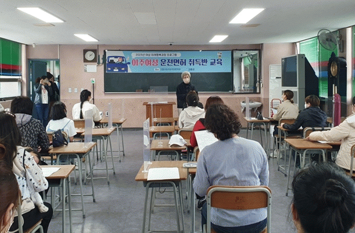 ¡®¿îÀü¸éÇã Ãëµæ¹Ý¡¯Àº Çѱ¹ ¿îÀü¸éÇã ½ÃÇè¿¡ ¾î·Á¿òÀ» ´À³¢´Â °áÈ¥ ÀÌÁÖ¿©¼ºµéÀÇ ¸éÇã ÃëµæÀ» µ½°í ±¹³» Á¤ÂøÀ» Áö¿øÇϰíÀÚ ¸¶·ÃµÈ ±³À°ÀÌ´Ù. °íÈﱺ¿¡¼´Â ¿îÀü¸éÇã Ãëµæ ±³À°ºñ¸¦ Áö¿øÇÏ°í °íÈï°æÂû¼´Â ÀÌÁÖ¿©¼ºµéÀÇ ÀÚ±¹¾î·Î Á¦ÀÛµÈ ±³Àç¿Í Çʱ⵵±¸¸¦, °íÈﱺ °¡Á·¼¾ÅÍ¿¡¼´Â ¸éÇ㸦 ³¡±îÁö ÃëµæÇÒ ¼ö ÀÖµµ·Ï ¸ÂÃãÇü ¼ºñ½º¸¦ Áö¿øÇÑ´Ù.