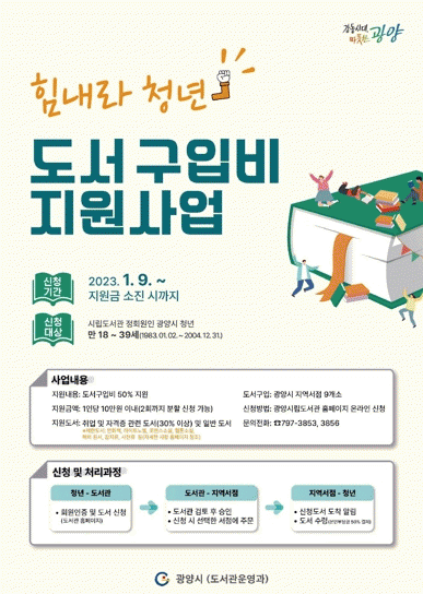 ±¤¾ç½Ã¿¡ °ÅÁÖÇÏ´Â ¸¸ 18¼¼ºÎÅÍ 39¼¼ û³â(2023.1.1. ±âÁØ)ÀÌ¸é ´©±¸³ª ½ÅûÇÒ ¼ö ÀÖÀ¸¸ç, û³â 1Àδç ÃÖ´ë 10¸¸ ¿ø±îÁö µµ¼±¸ÀÔºñÀÇ 50%(Àںδã 50%)¸¦ ½Ã¸³µµ¼°üÀÌ Áö¿øÇÑ´Ù.