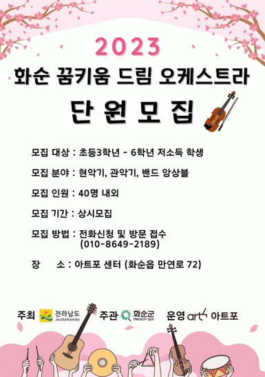 ȼø±º °ø¸ð¸¦ ÅëÇØ ¼±Á¤µÈ ¡®¾ÆÆ®Æ÷ ¼¾ÅÍ¡¯¿¡¼´Â ²ÞŰ¿ò µå¸² ¿ÀÄɽºÆ®¶ó ¿î¿µÀ» À§ÇØ °ü³» °ÅÁÖ Àú¼ÒµæÃþ ¾Æµ¿(Ãʵî 3Çгâ~6Çгâ)À» ´ë»óÀ¸·Î »õ·Î¿î ´Ü¿øÀ» ¿¬Áß ¸ðÁýÇϰí ÀÖ´Ù°í ¹àÇû´Ù.