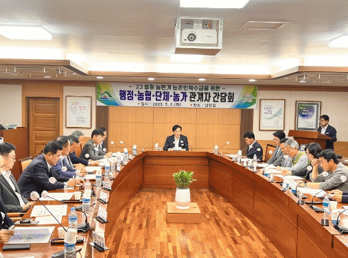 ¿ì½ÂÈñ ¿µ¾Ï±º¼ö, Á¤¿î°© ¿µ¾Ï±ºÀÇȸ °æÁ¦°Ç¼³À§¿øÀå, ÀÓÁ¤ºó ³óÇùÁß¾Óȸ¿µ¾Ï±ºÁöºÎ ÁöºÎÀå µî ³ó¾÷ÀδÜü °ü°èÀÚ, ³ó°¡ ´ëÇ¥ µî 40¿© ¸íÀÇ Âü¼®ÀÚµéÀº, °£´ãȸ¿¡¼ Áö¿ª Çö¾È ÇØ°áÀ» À§ÇØ ´Ù¾çÇÑ ÀǰßÀ» ³Â´Ù.