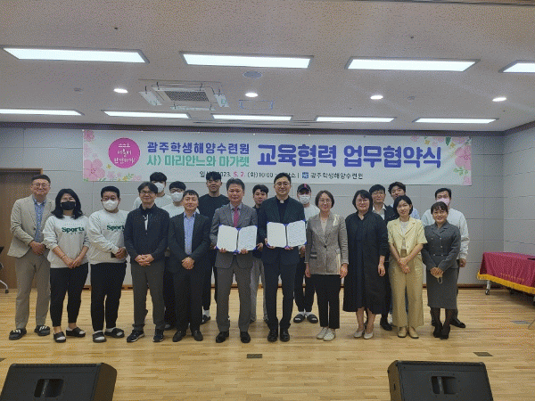»ç´Ü¹ýÀÎ ¸¶¸®¾È´À¿Í ¸¶°¡·¿ ¸í¿¹ÀÌ»çÀå ±è¿¬ÁØ ½ÅºÎ´Â ¡°À̹ø Çù¾àÀ¸·Î Áß¡¤°íµîÇлýµé¿¡°Ô ÇѼ¾Àΰú ÇÔ²²ÇÑ °£È£»ç ¸¶¸®¾È´À¿Í ¸¶°¡·¿ÀÇ Çå½ÅÀûÀÎ »î°ú ºÀ»çÁ¤½Å¿¡ ¾Ë¸± ¼ö ÀÖ°Ô µÆ´Ù. ¶Ç ¼Ò·ÏµµÀÇ ¿ª»ç¿Í ÇѼ¾ÀÎÀÇ »î¿¡ ´ëÇØ ÀüÇÒ ±âȸ°¡ ¸¸µé¾îÁ® ³Ê¹«³ª ±â»Ú°Ô »ý°¢ÇÑ´Ù¡±¸ç ¡°ÇлýÇØ¾ç¼ö·Ã¿ø°ú ¾ÕÀ¸·Î ±¤ÁÖ Çлýµé¿¡°Ô ½ÇÁúÀûÀÎ Áö¿ª¹®ÈüÇèÀÌ ÀÌ·ïÁöµµ·Ï ¿½ÉÈ÷ ³ë·ÂÇϰڴ١±°í ¹àÇû´Ù.