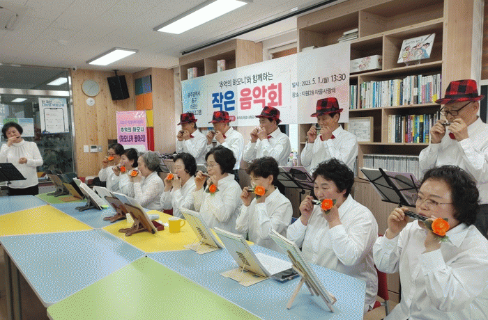 À̳¯ ÀÛÀº À½¾Çȸ¸¦ ²Ù¹Î ¡®Ãß¾ïÀÇ Çϸð´Ï¡¯´Â Áö³ 2021³âºÎÅÍ ³ëÀÎ ¿©°¡ Áö¿ø»ç¾÷ ÀÏȯÀ¸·Î ¹é³â µ¿¾Æ¸®¿¡¼ Ȱµ¿ÇÏ´Â µ¿È£È¸·Î, ÇöÀç 20¿© ¸íÀÇ ¾î¸£½Å ȸ¿øµé·Î ±¸¼ºµÈ Çϸð´ÏÄ« ¿¬ÁÖ ¸ðÀÓÀÌ´Ù.