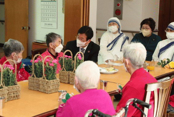 ¹Úº´±Ô ûÀåÀº À̳¯ ±¤»ê±¸ ³ëÀÎÁְź¹Áö½Ã¼³ÀÎ ¡®»ç¶ûÀǼ±±³¼ö³àȸ ¼º½ÉÀÇÁý¡¯(¿øÀå ¾Æ³ªÀÓ¼ö³à)À» ¹æ¹®ÇØ ¹«ÀÇŹ ¾î¸£½Å 7ºÐÀ» À§·ÎÇϰí, ¾ÈºÎ Àλ縦 ÀüÇß´Ù.
