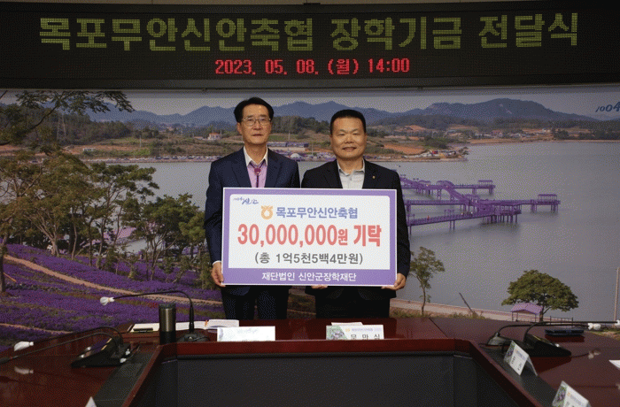 ¹®¸¸½Ä Á¶ÇÕÀåÀº ¡°Áö¿ª Áֹΰú Ãà»ê³ó°¡ÀÇ ¶ß°Å¿î »ç¶ûÀ¸·Î ¸ñÆ÷¹«¾È½Å¾ÈÃàÇùÀÌ ¸¹Àº ¼ºÀåÀ» Çϰí ÀÖ´Ù¡±¶ó°í ¹àÈ÷°í ¡°½Å¾ÈÀ» »ç¶ûÇÏ´Â ¸¶À½À» ´ã¾Æ Áö¿ª»çȸ ¹ßÀü°ú Áö¿ªÀÎÀç ¾ç¼ºÀ» À§ÇØ È°¿ëÇØ Áֽñ⠹ٶó´Â ¶æ¿¡¼ ÀåÇбâ±ÝÀ» Àü´ÞÇÏ°Ô µÆ´Ù¡±¶ó°í °Á¶Çß´Ù.