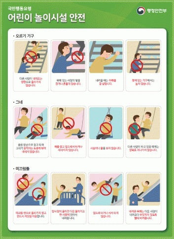 ³îÀ̱ⱸ¸¦ ÀÌ¿ëÇÒ ¶§´Â ²öÀÌ ´Þ¸° ¿ÊÀ̳ª ½½¸®ÆÛ µîÀ» Âø¿ëÇϰųª Àå³°¨ µîÀ» ¼ÒÁöÇÏÁö ¾Ê°í, ³îÀ̱ⱸº° ¾ÈÀü¿ä·ÉÀ» Àß ÁöÄÑ¾ß ¾ÈÀü»ç°í¸¦ ¿¹¹æÇÒ ¼ö ÀÖ´Ù. ¶Ç, ¿µÀ¯¾Æ´Â ³îÀ̸¦ ¸¶Ä¥ ¶§±îÁö º¸È£ÀÚÀÇ µ¿¹Ý ÇÏ¿¡ º¸È£¡¤°üÂûÀ» ¹Þ¾Æ¾ß ÇÑ´Ù.