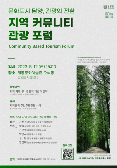 À̹ø Æ÷·³Àº ´ã¾çÀÇ ¹®È ÀÚ¿øÀ» Ȱ¿ëÇÑ Áö¼Ó°¡´ÉÇÑ °ü±¤ Ȱ¼ºÈ Àü·«À» ¸ð»öÇϱâ À§ÇØ ´ã¾ç±º¹®ÈÀç´Ü ¹®Èµµ½ÃÃßÁø´Ü ÁÖÃÖ·Î ¸¶·ÃµÆ´Ù.