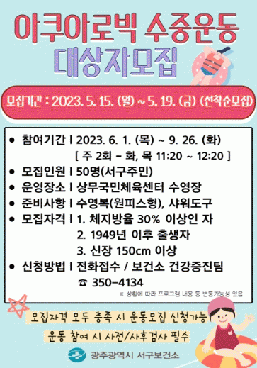 À̹ø ÇÁ·Î±×·¥Àº Áö³ 3¿ù ¸» °³°üÇÑ »ó¹«±¹¹ÎüÀ°¼¾ÅÍ¿Í Çù¾÷ÇÏ¿© 1Ãþ ½Ç³»¼ö¿µÀå¿¡¼ ¿î¿µµÉ ¿¹Á¤À̸ç 6¿ù1ÀϺÎÅÍ 9¿ù26ÀϱîÁö ÁÖ 2ȸ(È,¸ñ / 11:20~12:20) 4°³¿ù°£ ÁøÇàµÈ´Ù.