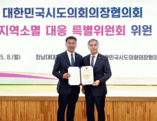 ´ëÇѹα¹½ÃµµÀÇȸÀÇÀåÇùÀÇȸ´Â Áö³ 8ÀÏ, ÃæºÏ ûÁֽà ¼ÒÀç û³²´ë ´ëÅë·É±â³ä°ü¿¡¼ Áö¿ª¼Ò¸ê ´ëÀÀ Ưº°À§¿øÈ¸ À§¿ø À§Ã˽ÄÀ» °®°í °¢ ½ÃµµÀÇȸ ÀÇ¿ø 1¸í¿¡°Ô À§ÃËÀåÀ» ¼ö¿©Çß´Ù.