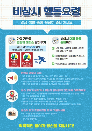 °ø½À»óȲ ´ëºñ ¹Î¹æÀ§ ´ëÇÇ ÈÆ·ÃÀº ¿ÀÈÄ 2½Ã Á¤°¢ ±â°üº° ÀÚüÀûÀ¸·Î °æº¸¸¦ ¹ß·ÉÇÏ°í ´ëÇǽü³·Î À̵¿ÇØ ºñ»ó½Ã ±¹¹ÎÇൿ¿ä·É°ú ¹æµ¶¸é Âø¿ë ¹× ½ÉÆó¼Ò»ý¼ú ±³À°À» ½ÃÇàÇÑ´Ù.