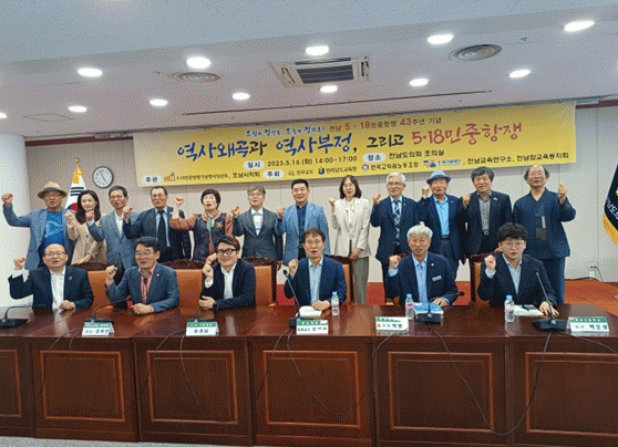 ¹Ú ÀÇ¿øÀº ¡°5¡¤18¿ª»ç¿Ö°îÀÇ ´ë󹿾ÈÀ¸·Î Àü³²µµ¿Í Àü³²±³À°Ã»ÀÌ ¡®Ã»»êµÇÁö ¾Ê´Â ¿ª»ç´Â ¹Ýµå½Ã µÇµ¹¾Æ¿Â´Ù¡¯´Â ¾ö¿¬ÇÑ »ç½ÇÀ» ´õ¿í ÈûÁÖ¾î ¾Ë¸®°í ´ÜÁËÇÏÁö ¾Ê´Â ¿ª»çÀû ±³ÈÆÀ» ¾Ë¸®´Â °ÍÀÌ ¹«¾ùº¸´Ù Áß¿äÇÔ¡±À» ¹àÈ÷¸ç Æ÷·³À» ¸¶ÃÆ´Ù.