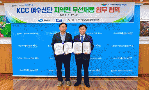 ½Ã¿¡ µû¸£¸é Áö³ 17ÀÏ ¿ÀÀü ½ÃÀå½Ç¿¡¼ ¿©¼ö½Ã¿Í (ÁÖ)KCC´Â ¡®Áö¿ª¹Î ¿ì¼±Ã¤¿ë Çù¾à¡¯À» ¸Î°í Áö¿ªÀÎÀç ä¿ë È®´ë¿Í Áö¿ª¹ßÀüÀ» À§ÇØ ÈûÀ» ¸ðÀ¸±â·Î Çß´Ù.