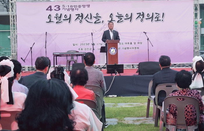 °íÀϼ® 5.18±â³äÇà»çÀ§¿øÈ¸ À§¿øÀåÀº "´ëÇѹα¹ ¹ÎÁÖÁÖÀǸ¦ À§ÇØ ¸ñ¼ûÀ» ¹ÙÄ£ ±¤ÁÖ¡¤Àü³²ÀÇ ¼ö¸¹Àº ¹ÎÁÖ¿»çÀÇ °Å·èÇÑ Èñ»ýÀ» °¡½¿ ±íÀÌ ±â¾ïÇϸç 5.18À» ¿À¿ùÀÇ Á¤½ÅÀ¸·Î ±â¾ïÇØ¾ß ÇÑ´Ù"¸ç ¡°5.18ÀÇ ¿ª»ç¸¦ ¿Ã¹Ù¸£°Ô ±â¾ïÇÏ°í °è½Â, ¹ßÀü½ÃÄÑ ³ª°¡±â À§ÇØ ¿ª»ç¸¦ ÀØÁö ¾Ê´Â ±ú¾îÀÖ´Â ±º¹ÎµéÀÇ Áö¼ÓÀûÀÎ °ü½ÉÀÌ ÇÊ¿äÇÏ´Ù¡±°í °Á¶Çß´Ù.