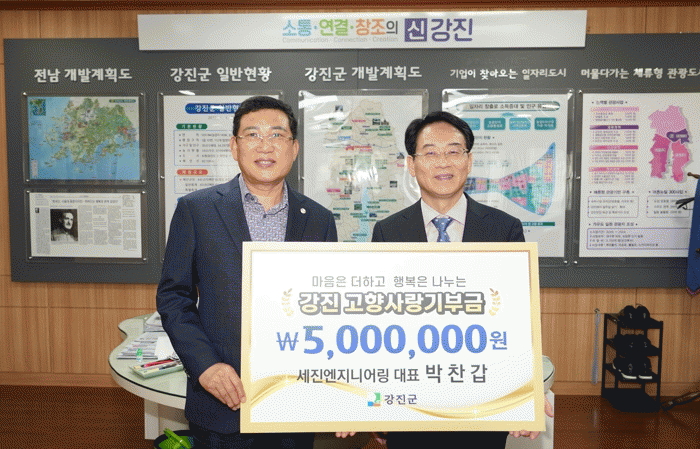 °Áø±ºÀº ¹ÚÂù°© ¢ß¼¼Áø¿£Áö´Ï¾î¸µ ´ëÇ¥°¡ °íÇâ»ç¶û±âºÎ±Ý 500¸¸ ¿øÀ» 12ÀÏ ±âŹÇß´Ù°í ¹àÇû´Ù.