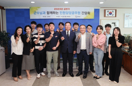 À̹ø °£´ãȸ´Â ±è»ê ¹«¾È±º¼ö°¡ ¹Î¿ø ´ã´ç °ø¹«¿øÀÇ ¾Ö·Î»çÇ×°ú °íÃæÀ» ûÃëÇϰí, »ç±â ÁøÀÛÀ» À§ÇØ ¸¶·ÃµÆ´Ù.