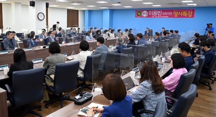 ÀÌ¿ëºó ±¹È¸ÀÇ¿øÀº À̳¯ ¡®±¤»ê, ±¤ÁÖ ¹Ì·¡ÀÇ Áß½ÉÃ࡯À» ÁÖÁ¦·Î ÇÑ Æ¯°¿¡¼ ¿¡³ÊÁöÀüȯ, ÀΰøÁö´É, ¹Ì·¡¸ðºô¸®Æ¼, ½ºÅ¸Æ®¾÷, µµ½ÃÇõ½Å, YÇÁ·ÎÁ§Æ® µî 6°³ÀÇ Å°¿öµå¸¦ ¿°ÅÇÏ¸é¼ ¡°¸¶ÇÑÁö¿ª ¹®¸í°ú Á¤½ÅÀÇ ¹ß¿øÁöÀÎ ¿µ»ê°À» Áß½ÉÀ¸·Î ±¤ÁÖ°¡ º¯Çϰí, ±× Çٽɿ¡ ±¤»ê±¸°¡ ÀÚ¸®Çϰí ÀÖ´Ù¡±°í ¿ª¼³Çß´Ù.