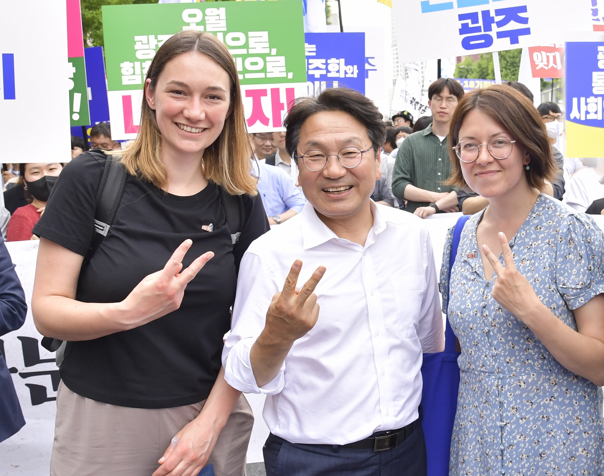 ° ½ÃÀåÀº ÀÌ¾î ¡°¹ÎÁÖÀÇ µµ½Ã ¶óÀÌÇÁÄ¡È÷ÀÇ ÆòÈÇõ¸í°ú ¹ÎÁÖȸ¦ À§ÇØ ³ë·ÂÇÑ ¸ðµç À̵éÀ» °¡½¿¿¡ »õ±â°Ú´Ù¡±¸ç ¡°5¡¤18À» ±â¾ïÇÏ°í ¹è¿ì±â À§ÇØ ±¤ÁÖ¸¦ ã¾ÆÁּż °¨»çÇÏ´Ù. ¿ª»ç¡¤¹®È µî ´Ù¾çÇÑ ±³·ùÇù·ÂÀ» ²ö²öÈ÷ À̾°Ú´Ù¡±°í ¸»Çß´Ù.