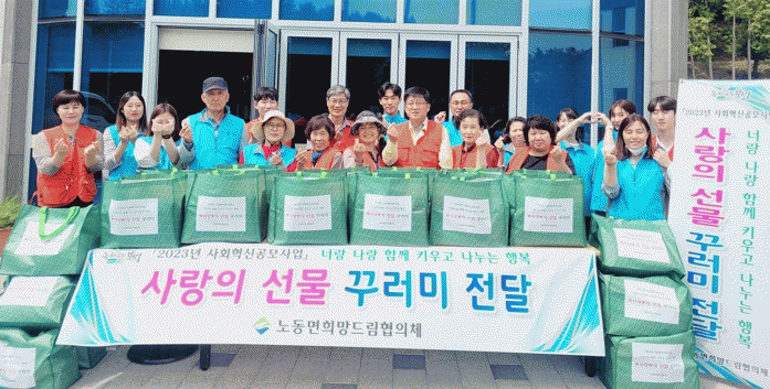 ¡®»ç¶ûÀÇ ¼±¹°²Ù·¯¹Ì¡¯´Â ³ëµ¿¸é Èñ¸Áµå¸²ÇùÀÇü°¡ ÃßÁø ÁßÀÎ Àü¶ó³²µµ »çȸÇõ½Å °ø¸ð»ç¾÷À¸·Î »ýÇÊǰ°ú °£½Ä ¹× ½Ä·áǰÀ¸·Î ±¸¼ºµÈ ¼±¹° ²Ù·¯¹Ì¸¦ Ãë¾à°èÃþ¿¡°Ô Á÷Á¢ Àü´ÞÇÏ´Â °ÍÀÌ´Ù.