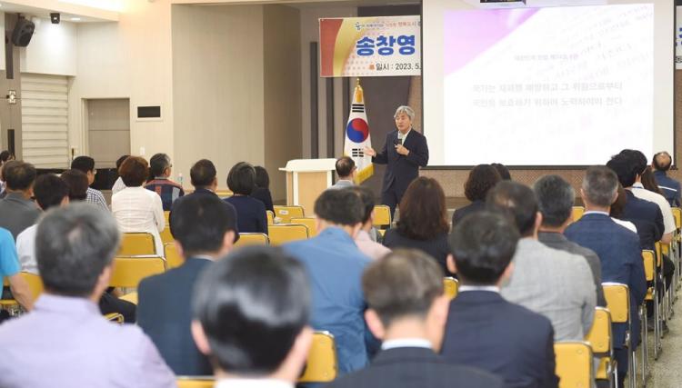 ¼Û⿵ ±³¼ö´Â ¡®½Ã¹ÎµéÀÇ ¾ÈÀüÀ» Áö۱â À§Çؼ ¿ì¸®°¡ ÇÒ ¼ö ÀÖ´Â °ÍÀº ¹«¾ùÀΰ¡?¡¯¶ó´Â Áú¹®À» ½ÃÀÛÀ¸·Î Àι®ÇÐÀû °üÁ¡¿¡¼ ºñ·ÔÇÑ ¾ÈÀü¿¡ ´ëÇÑ ½Å³ä°ú öÇÐÀ» Ư° Âü¼®Àڵ鿡°Ô ¼Ò°³Çß´Ù. ¶ÇÇÑ ÀÌÅ¿ø Âü»ç¿Í ¼¼¿ùÈ£ Âü»ç µî °ú°Å »ç·Ê¸¦ ÅëÇØ ´ëÇѹα¹ ¾ÈÀü °ü¸®Ã¼°èÀÇ ¹®Á¦Á¡À» Áø´ÜÇÑ µÚ Àç³ ¾ÈÀü»ç°í ¹ß»ý ½Ã Áö¿ªÀç³¾ÈÀü´ëÃ¥º»ºÎÀÇ ±¸¼º ¹× ÀÓ¹«¿Í ¿ªÇÒ, Ãʱ⠴ëÀÀ ¿ä·É°ú »óȲÀüÆÄü°è ¹× °ü·Ã Á¦µµ µîÀ» ¼³¸íÇß´Ù.