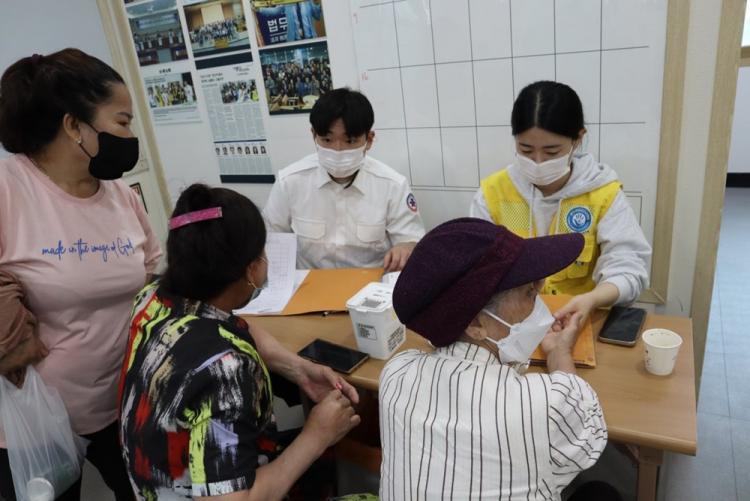 °Ç°°ü¸® ¾ÈÀüº¸°Ç ±³À°°ú ´õºÒ¾î 1¡3ÇгâÀ¸·Î ±¸¼ºµÈ ºÀ»çµ¿¾Æ¸® Çлý 6¸íÀº ¿Ü±¹ÀÎ ÀÌÁֹΠȯÀڵ鿡°Ô Ç÷¾Ð ¹× Ç÷´ç üũ, Ä¡°ú, ÇÑÀÇÇÐ º¸Á¶ Ȱµ¿À» Àü°³Çß´Ù.