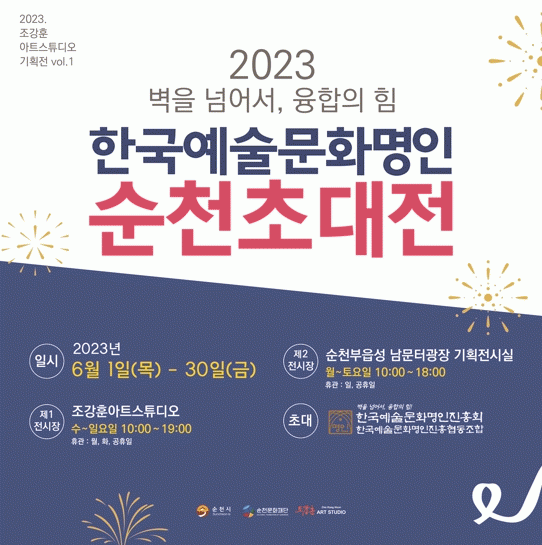 ¡®º®À» ³Ñ¾î¼, À¶ÇÕÀÇ Èû¡¯À̶ó´Â ´ëÁÖÁ¦·Î ÁøÇàµÇ´Â ÃÊ´ëÀüÀº Á¦1Àü½ÃÀåÀÎ Á¶°ÈÆ ¾ÆÆ®½ºÆ©µð¿À ±ÍÇâ(ÏýúÁ)°ú Á¦2Àü½ÃÀå ¼øÃµºÎ À¾¼º ³²¹®ÅÍ ±¤Àå ±âȹÀü½Ã½Ç ºñ»ó(Þ«ß¾)À¸·Î ³ª´©¾î ÁøÇàµÈ´Ù.