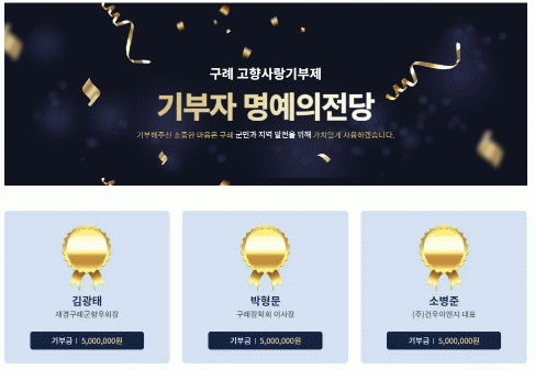 ±¸·Ê±º °íÇâ»ç¶û±âºÎÁ¦ ¿Â¶óÀÎ ¸í¿¹ÀÇ Àü´çÀº °³ÀÎÀÇ ±âºÎ ÃÖ´ëÇѵµÀÎ 500¸¸ ¿øÀ» ±âŹÇÑ ±âºÎÀÚÀÇ À̸§°ú ¼Ò¼ÓÀ» °Ô½ÃÇÏ´Â ÇüÅ·Π¿î¿µµÇ¸ç, ±º ȨÆäÀÌÁö ³» °íÇâ»ç¶û±âºÎÁ¦ ÆäÀÌÁö¸¦ ÅëÇØ È®ÀÎÇÒ ¼ö ÀÖ´Ù.
