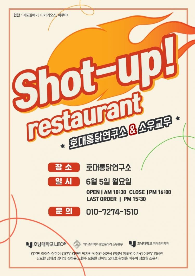 [ÅåÅå´º½º]È£³²´ëÇб³ ¿Ü½ÄÁ¶¸®Çаú(ÇаúÀå ±è¿µ±Õ) â¾÷µ¿¾Æ¸® ¡®¼Ò¿ì±³¿ì¡¯(Áöµµ±³¼ö ÀÌ»óÁø, ȸÀå ±èÀ¯¹Î)´Â 6¿ù 5ÀÏ Çб³ ¾Õ È£´ëÅë´ß¿¬±¸¼Ò¿Í °øµ¿°³¹ßÇÑ ¸Þ´º¸¦ À§ÁÖ·Î ÆË¾÷ ·¹½ºÅä¶û(Shot-up restaurant)À» ¿¬´Ù.