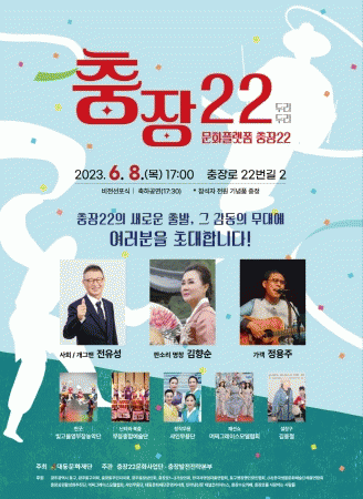 ƯÈ÷ À̹ø Çà»ç¿¡¼´Â ÃæÀå22 »õ À§Å¹ ±â°üÀ¸·Î ¼±Á¤µÈ (»ç)´ëµ¿¹®ÈÀç´ÜÀÌ ¿øµµ½É ÃæÀå·ÎÀÇ ¹ßÀüÀ» °ßÀÎÇÏ´Â Çãºê ¿ªÇÒÀ» ÇØ¿Â ÃæÀå22ÀÇ »õ·Î¿î µµ¾àÀ» À§ÇØ ´Ù¾çÇÑ ÇÁ·Î±×·¥À» ÅëÇØ »îÀÇ ÁúÀ» ³ôÀ̰í Áö¿ª »çȸ¿Í ÇÔ²² ¹®È¸¦ Áñ±æ ¼ö ÀÖ´Â ½Ã¹Î¹®È¸¶´çÀ» ¸¸µé¾î ³ª°¡°Ú´Ù´Â °áÀǸ¦ ´ÙÁö´Â ºñÀü ¼±Æ÷½Äµµ °ÅÇàÇÒ °èȹÀÌ´Ù.