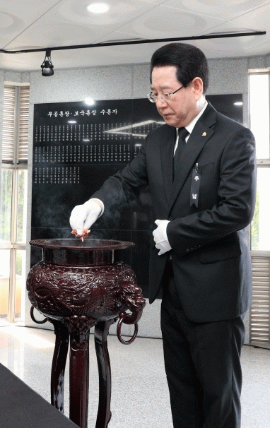 ±è¿µ·Ï Áö»ç´Â Ãß³ä»ç¸¦ ÅëÇØ ¡°³ª¶ó¿Í ¹ÎÁ·À» À§ÇØ Àå·ÄÈ÷ »êÈÇÑ ¼ø±¹¼±¿°ú È£±¹¿µ·É²² Á¸°æ°ú Ã߸ðÀÇ ¸¶À½À» ¹ÙÄ£´Ù¡±¸ç ¡°±¹°¡ À¯°øÀÚ¿Í À¯°¡Á· ¿¹¿ì¿¡ Á¤¼ºÀ» ´ÙÇϰڴ١±°í °Á¶Çß´Ù. ÀÌ¾î ¡°¼±Á¶µé²²¼ ¸ñ¼û ¹ÙÃÄ ÁöÄѳ½ ¼ÒÁßÇÑ ÀÌ ¶¥À» ¹ÎÁÖ¿Í ÆòȰ¡ ²ÉÇÇ´Â ¡®µû¶æÇÑ Çູ°øµ¿Ã¼¡¯, ¸ðµÎ°¡ »ì±â ÁÁÀº ¡®»ý¸íÀÇ ¶¥ À¸¶ä Àü³²¡¯À¸·Î ¸¸µé°Ú´Ù¡±°í µ¡ºÙ¿´´Ù.