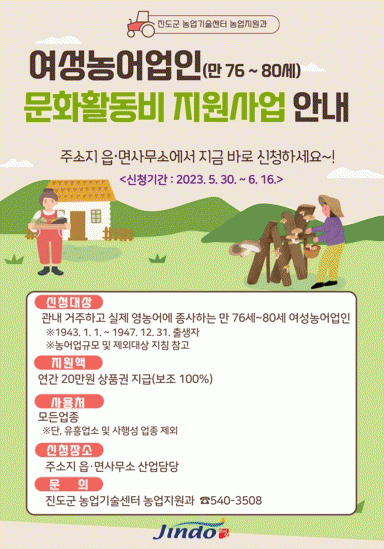 ƯÈ÷ Áøµµ±ºÀº °æÁ¦Àû Â÷º°°ú ¹®ÈÀû °ÝÂ÷¸¦ ÇØ¼ÒÇϱâ À§ÇØ ¸¸ 76¼¼~80¼¼ÀÇ ¿©¼º ³ó¾î¾÷Àε鿡°Ôµµ Ãß°¡·Î Áö¿øÀ» ½Ç½ÃÇÑ´Ù.